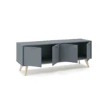 Diseño Simétrico y Contemporáneo: La disposición de sus puertas crea un ritmo visual armónico que aporta estabilidad y calma al entorno del televisor, convirtiéndolo en una pieza arquitectónica dentro del salón.