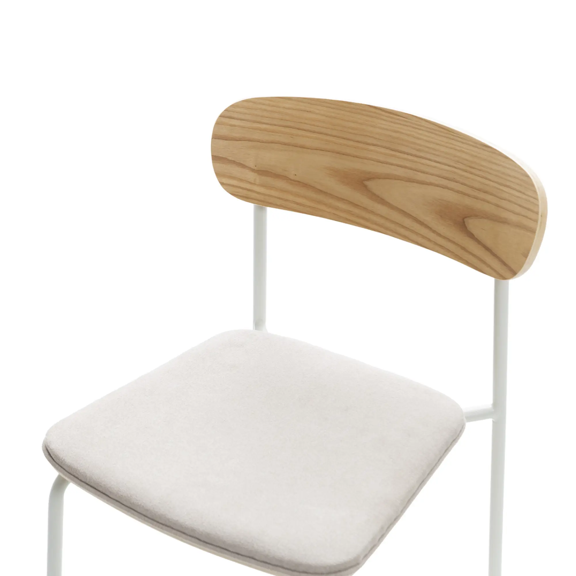 Armonía de Tonos Claros: El beige del asiento aporta calidez, mientras que las patas blancas integran la silla perfectamente con zócalos, paredes claras o mesas lacadas, creando una continuidad estética muy valorada en el interiorismo actual.