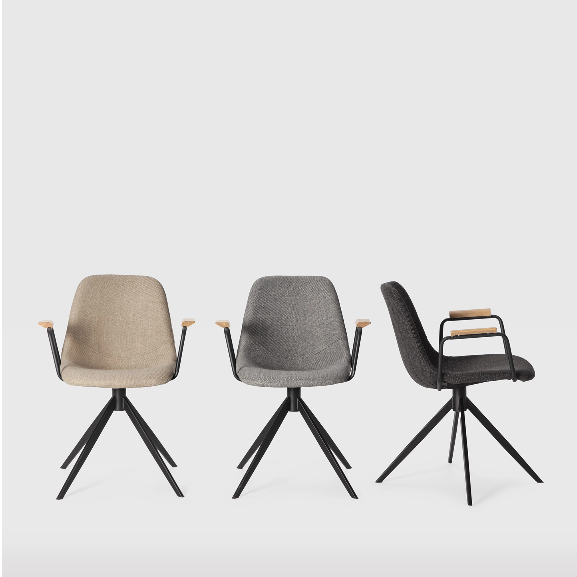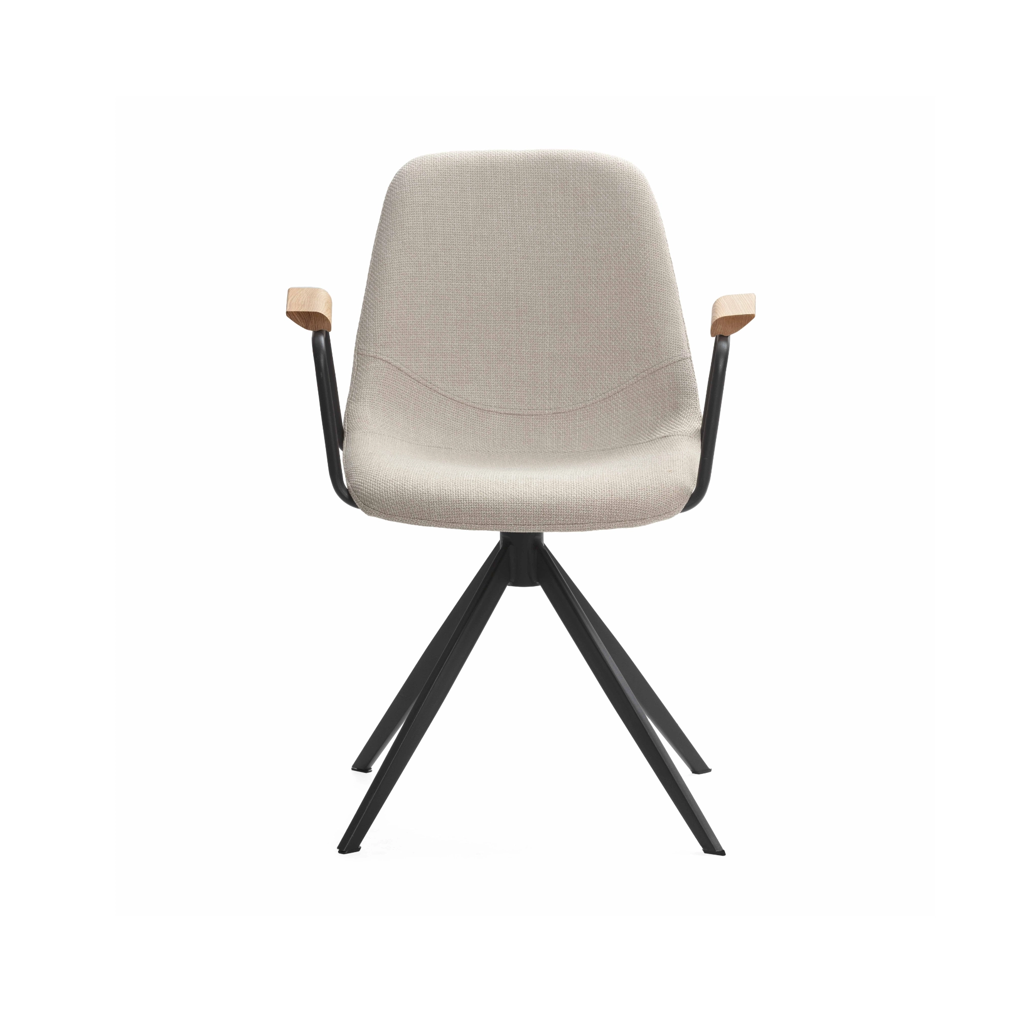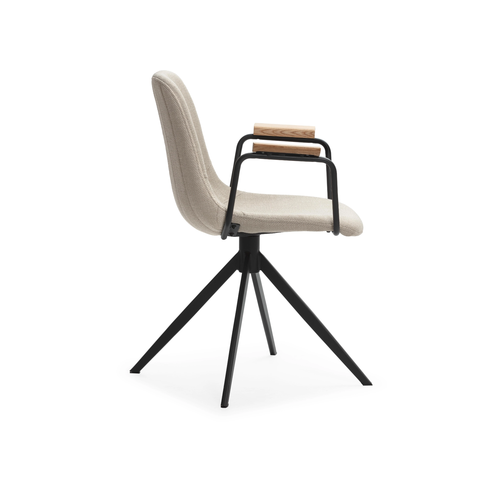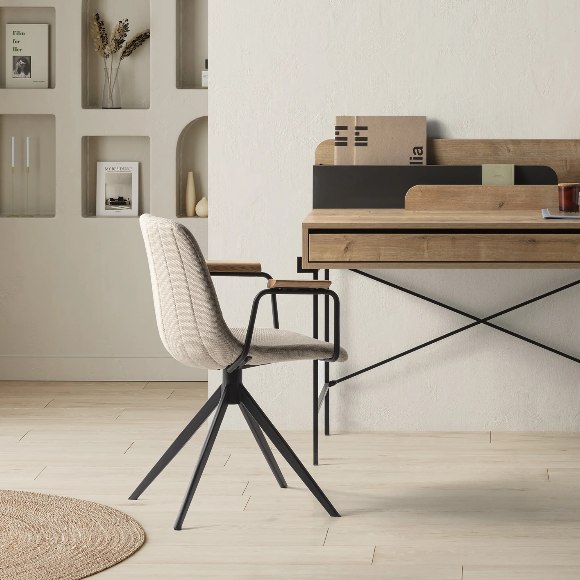 Base Estilizada y Estable: Las patas metálicas en acabado oscuro crean un contraste elegante con el tejido claro, garantizando una base sólida que soporta el movimiento giratorio con total seguridad.