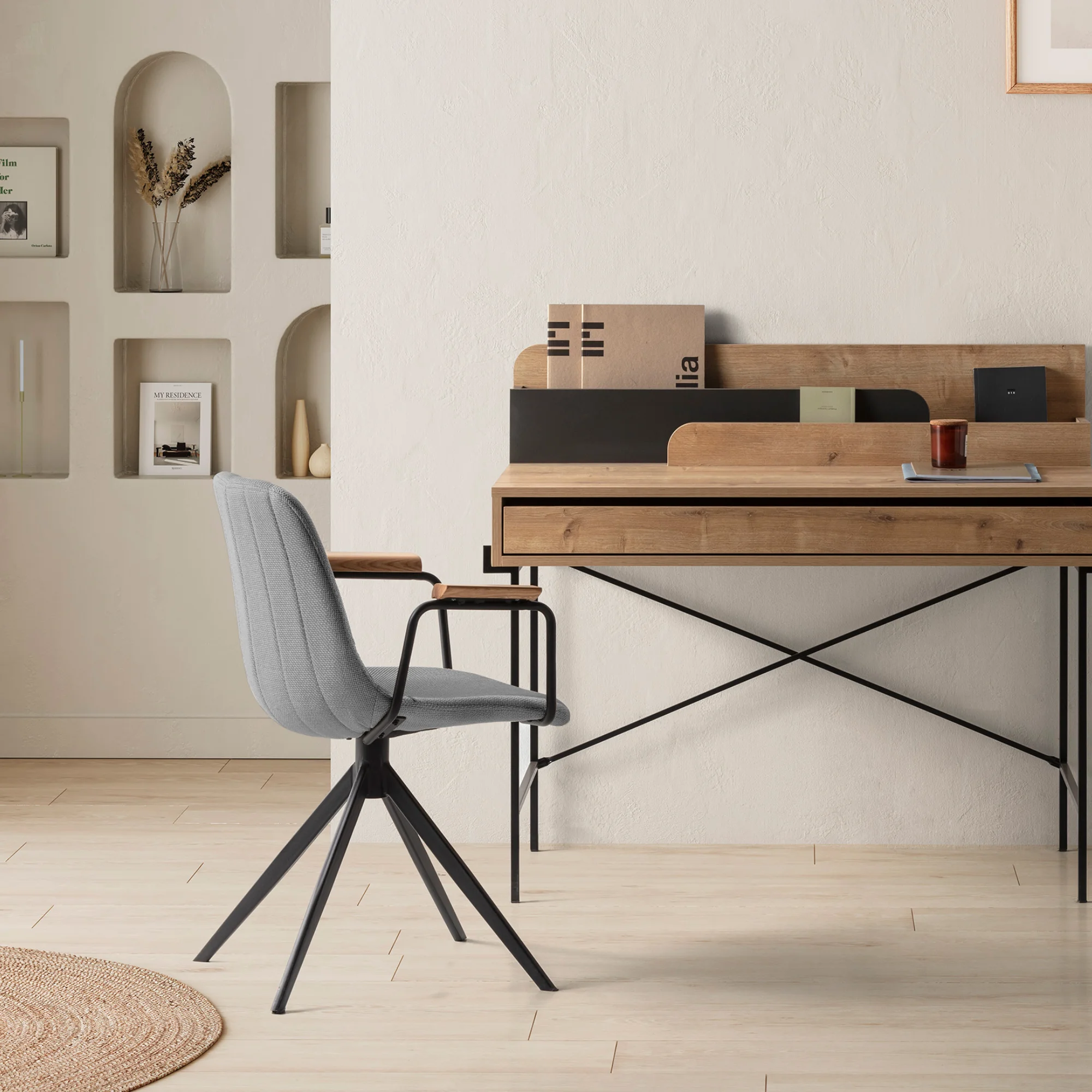 Giro de 360 Grados: Su robusto mecanismo giratorio permite una rotación completa y suave. Esta funcionalidad es ideal para espacios diáfanos donde el usuario necesita alternar la atención entre diferentes zonas de la habitación.