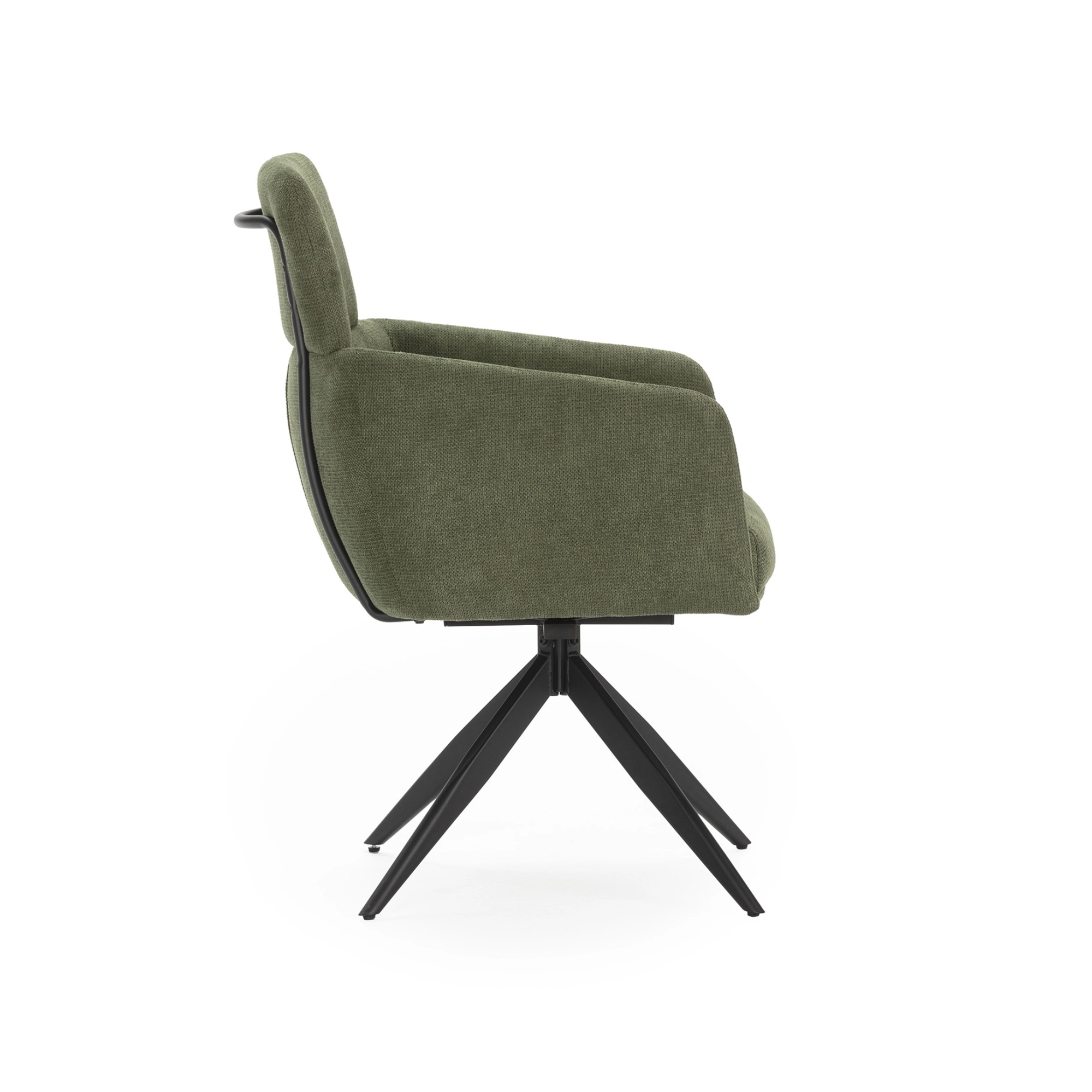 El tono Verde elegido para este modelo es profundo y equilibrado, evocando serenidad y frescura. Es el color perfecto para romper con la monotonía de los espacios neutros (blancos, grises o maderas) sin perder la elegancia. Al combinarse con las patas metálicas negras, el sillón adquiere un carácter industrial-chic que encaja de maravilla en salones modernos, bibliotecas personales o comedores de diseño.