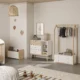 Tejido de Fácil Integración: El tapizado beige está seleccionado por su textura agradable al tacto y su capacidad para integrarse en decoraciones de estilo mediterráneo, escandinavo o clásico moderno.