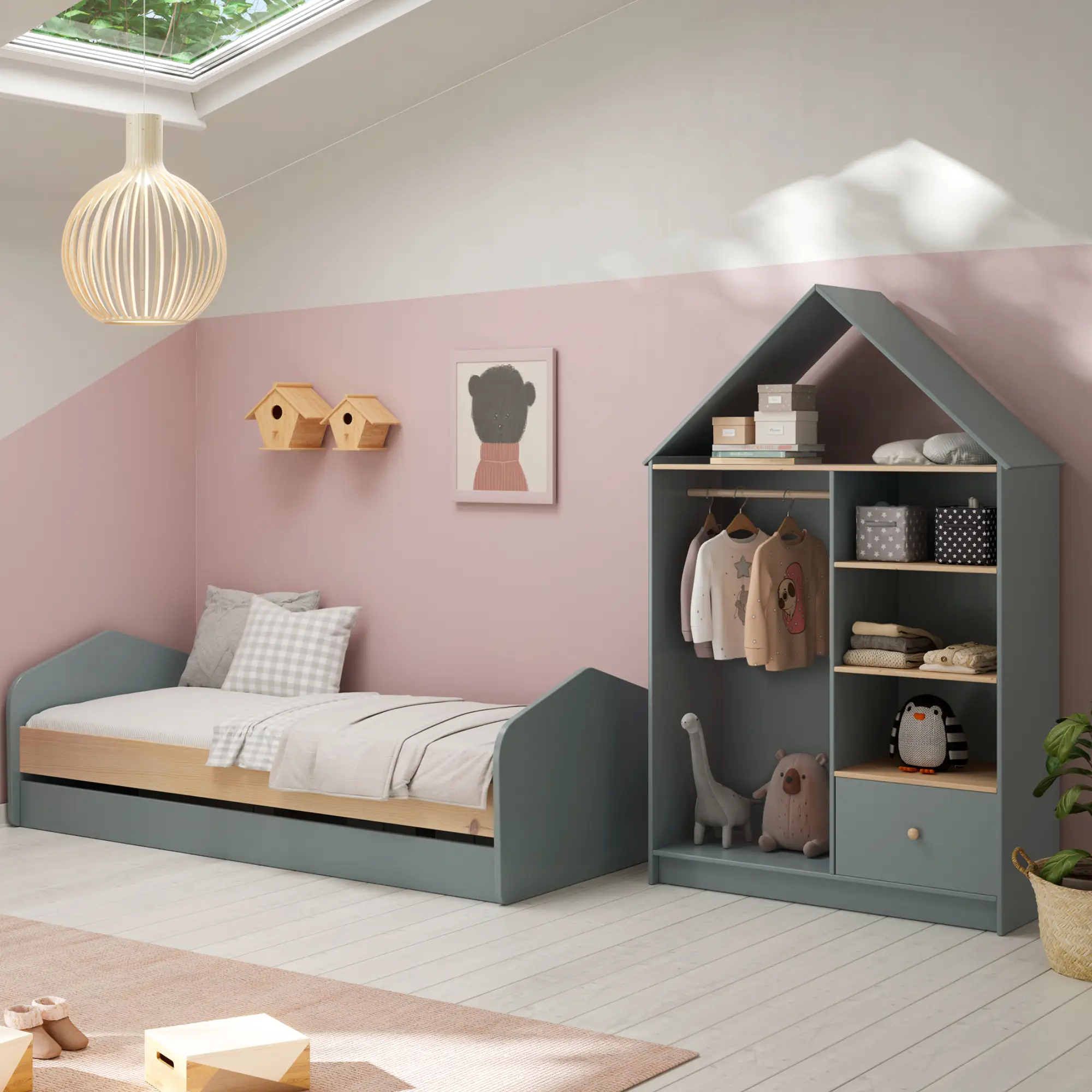 El Vestidor Estefanía 3H1C Verde Kaki/Cera Blanca es una solución práctica y funcional para organizar ropa y accesorios de forma cómoda. Su diseño abierto facilita el acceso diario, mientras que el acabado en verde kaki aporta un toque moderno y diferente al espacio.