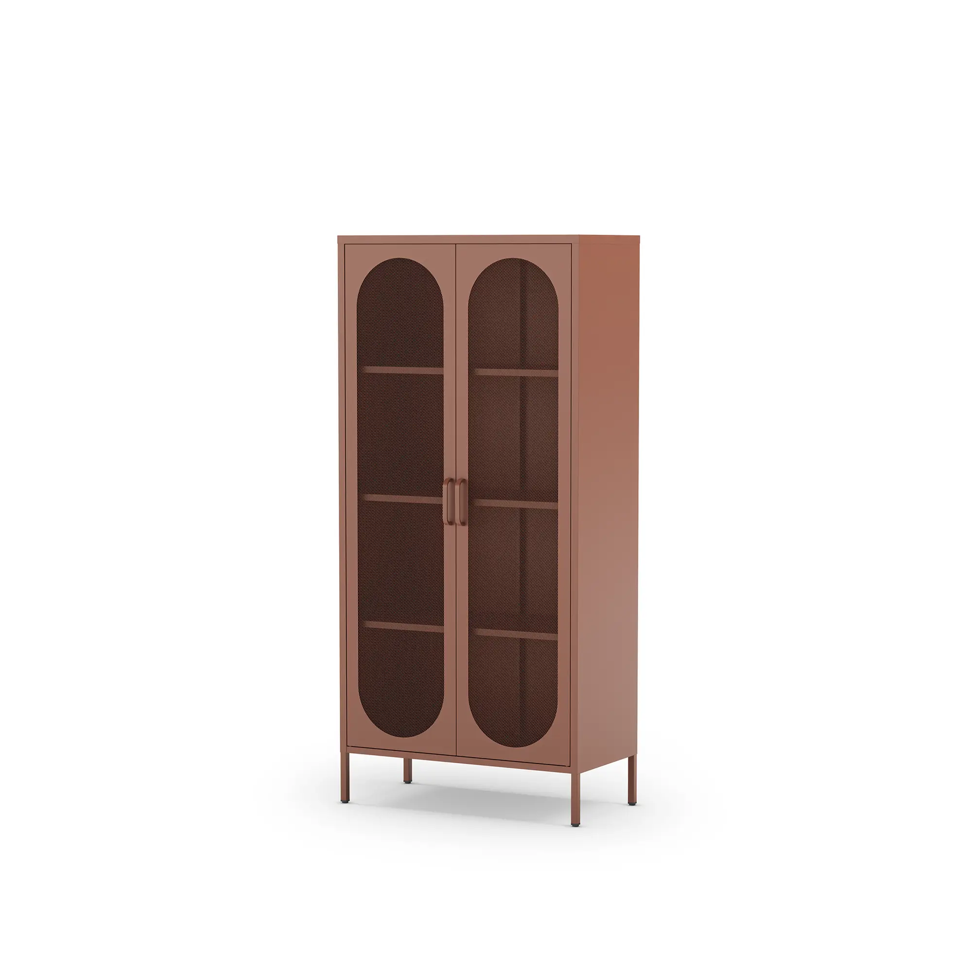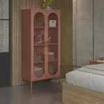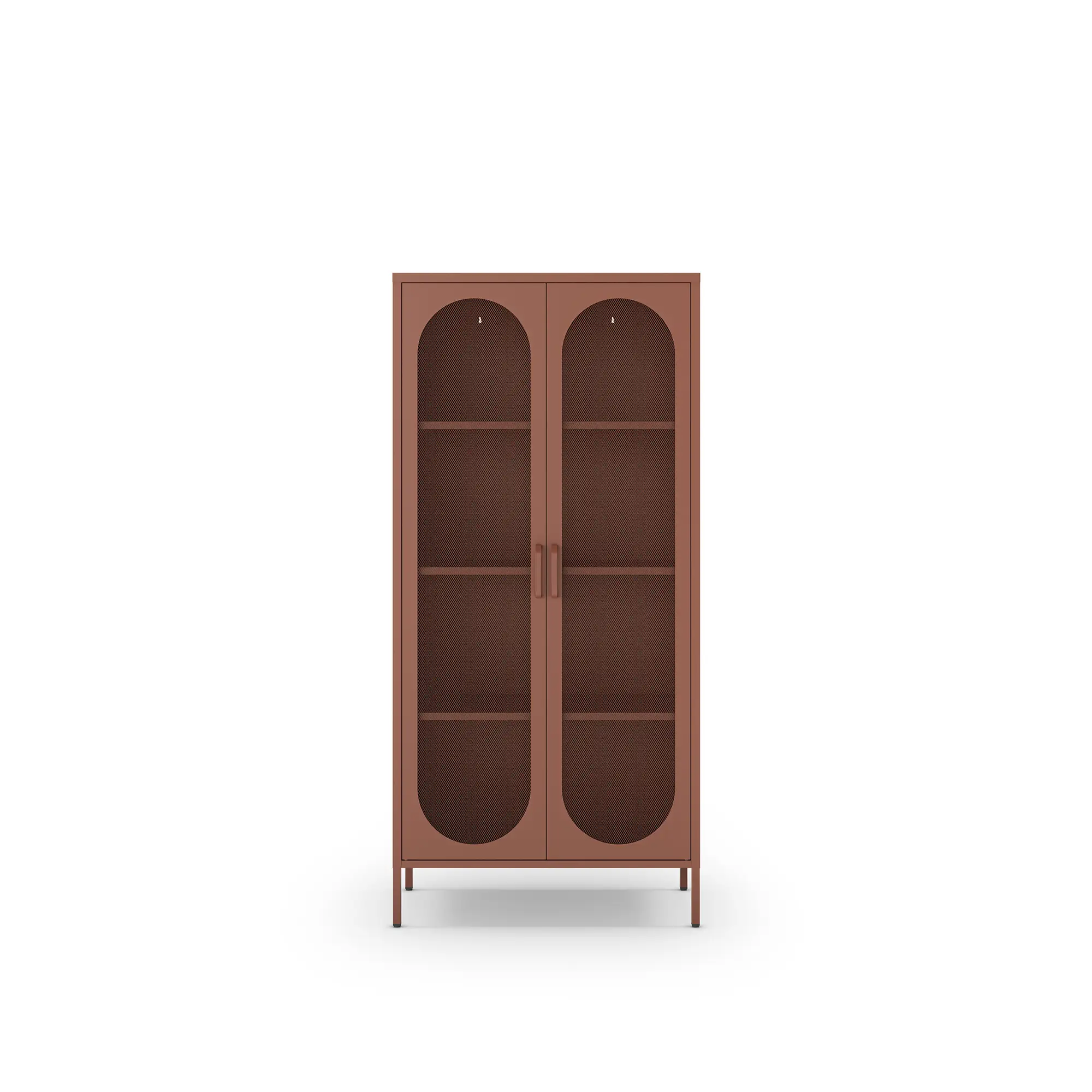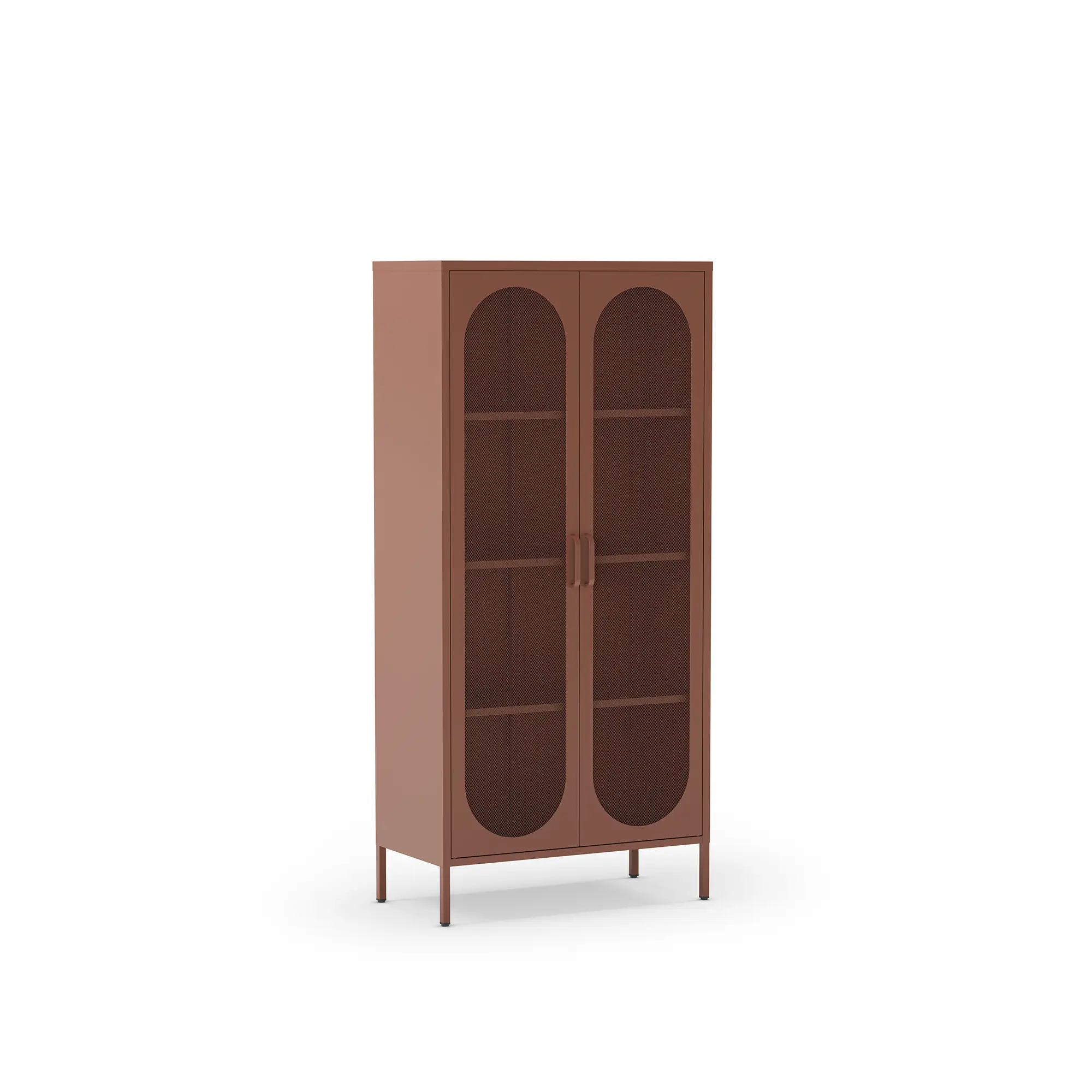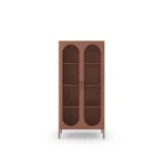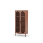 La vitrina Diora es una solución de almacenamiento versátil que aprovecha el espacio vertical. Su estética de vitrina de color cálido con detalles curvos lo convierte en una pieza funcional que es también un fuerte elemento decorativo.