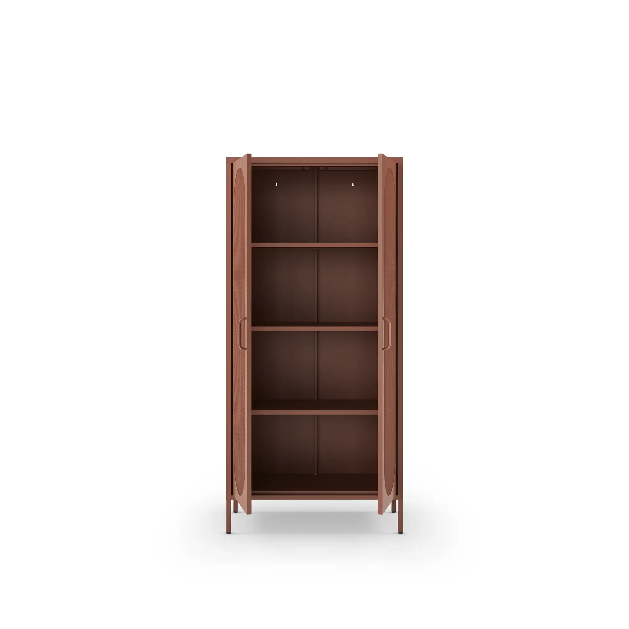 Vitrina Diora 2P 170cm de color terracota es un armario vertical y esbelto con un diseño moderno, ideal para maximizar el almacenamiento en altura y aportar un toque de color cálido y distintivo a cualquier estancia.