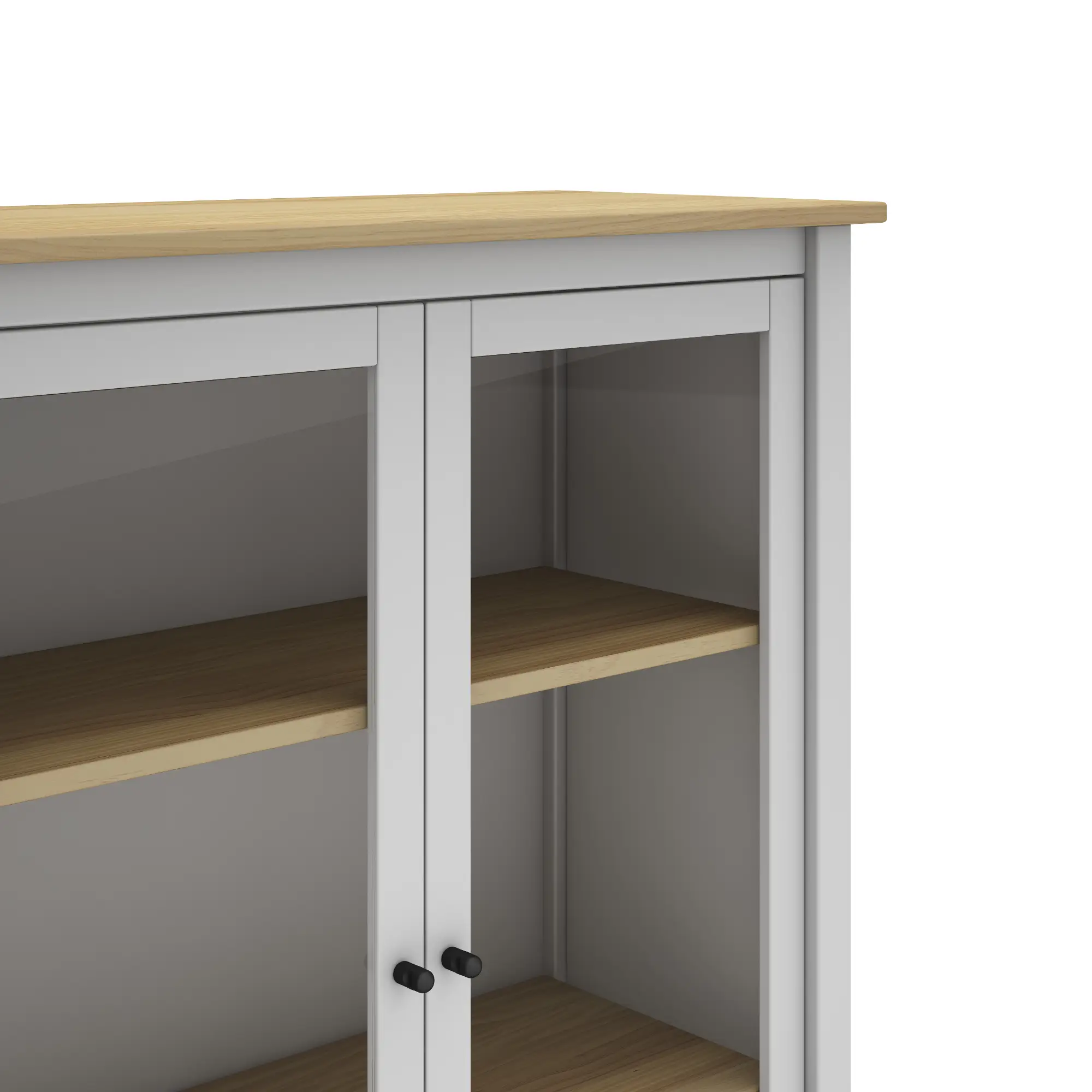 • Puertas de Cristal de Gran Formato: Las dos puertas principales cuentan con amplias superficies acristaladas que permiten una visión clara del interior, convirtiendo tus objetos favoritos en parte activa de la decoración.