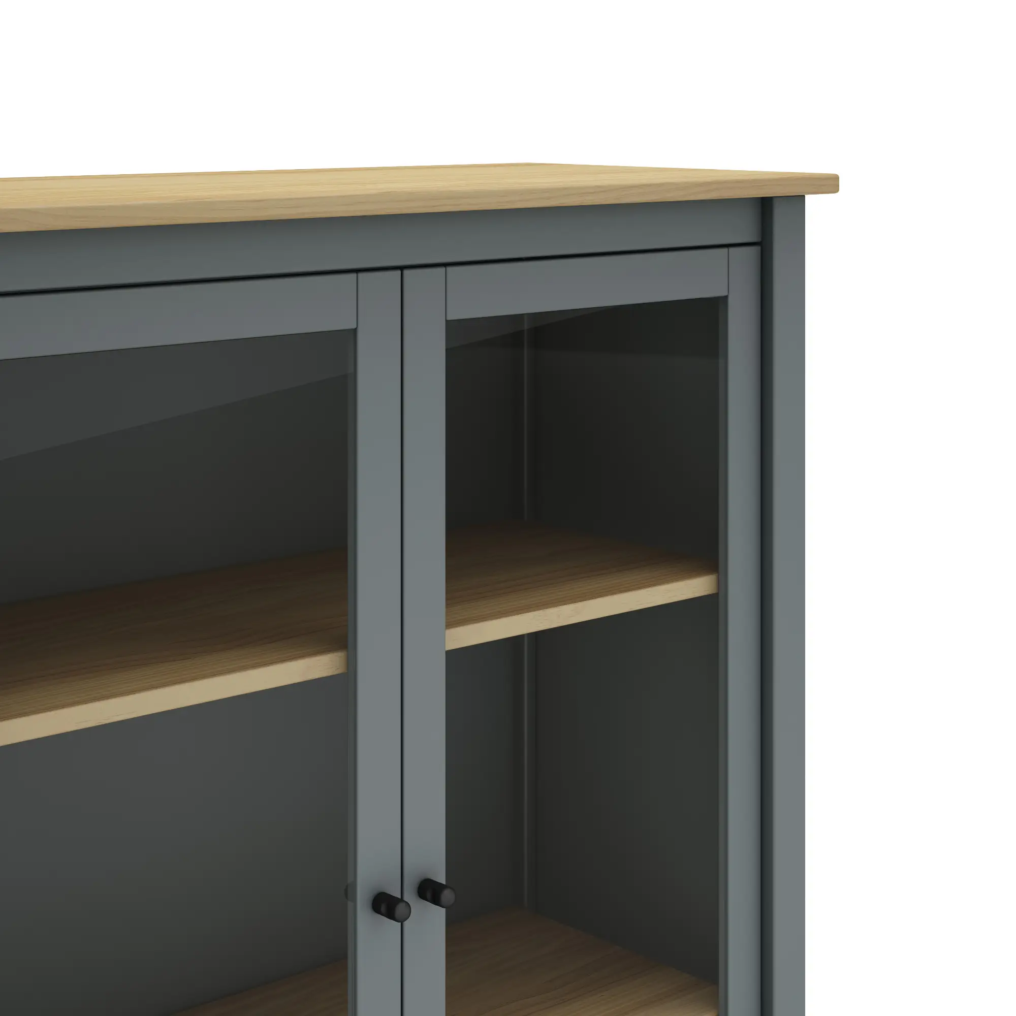 Puertas de Cristal de Gran Formato: Las dos puertas principales cuentan con amplias superficies acristaladas que permiten una visión clara del interior, convirtiendo tus objetos favoritos en parte activa de la decoración de la estancia.